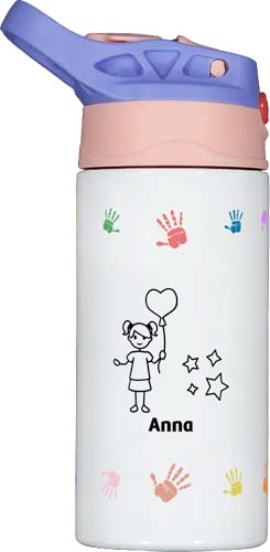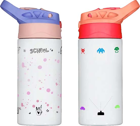 El aislamiento al vacío mantiene las bebidas frías durante horas. Botellas de agua para niños reutilizables, ecológicas y sostenibles. ¡Se adaptan perfectamente a las manos de los pequeños!